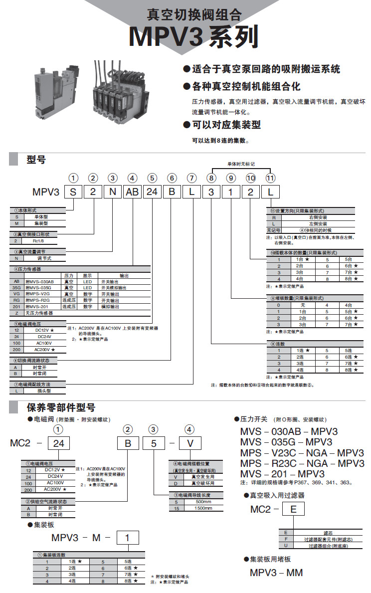 MPV3-S-2-N-AB-12,MPV3-S-2-N-35G-12,MPV3-M-2-N-AB-12,真空切换阀组合