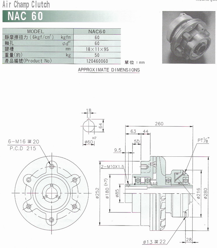 NAC5,NAC10,NAC40,NAC60,空压通轴式离合器