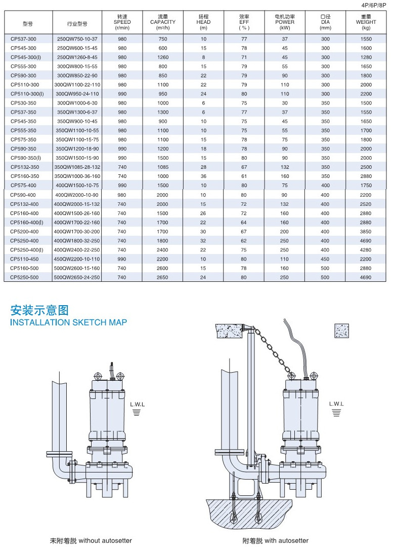 250QW500-6-15,250QW600-6-18.5,250QW350-10-18.5,250QW700-6-22,250QW460-13-30,