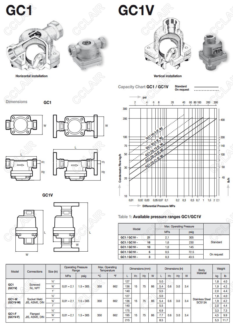 GC1,GC1V,GC1-W,GC1V-W,GC1-F,GC1V-F,miyawaki浮球式蒸汽疏水阀