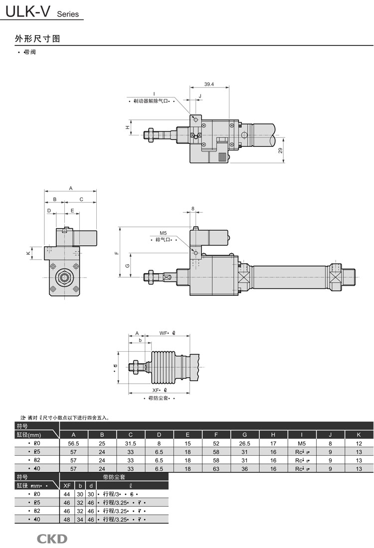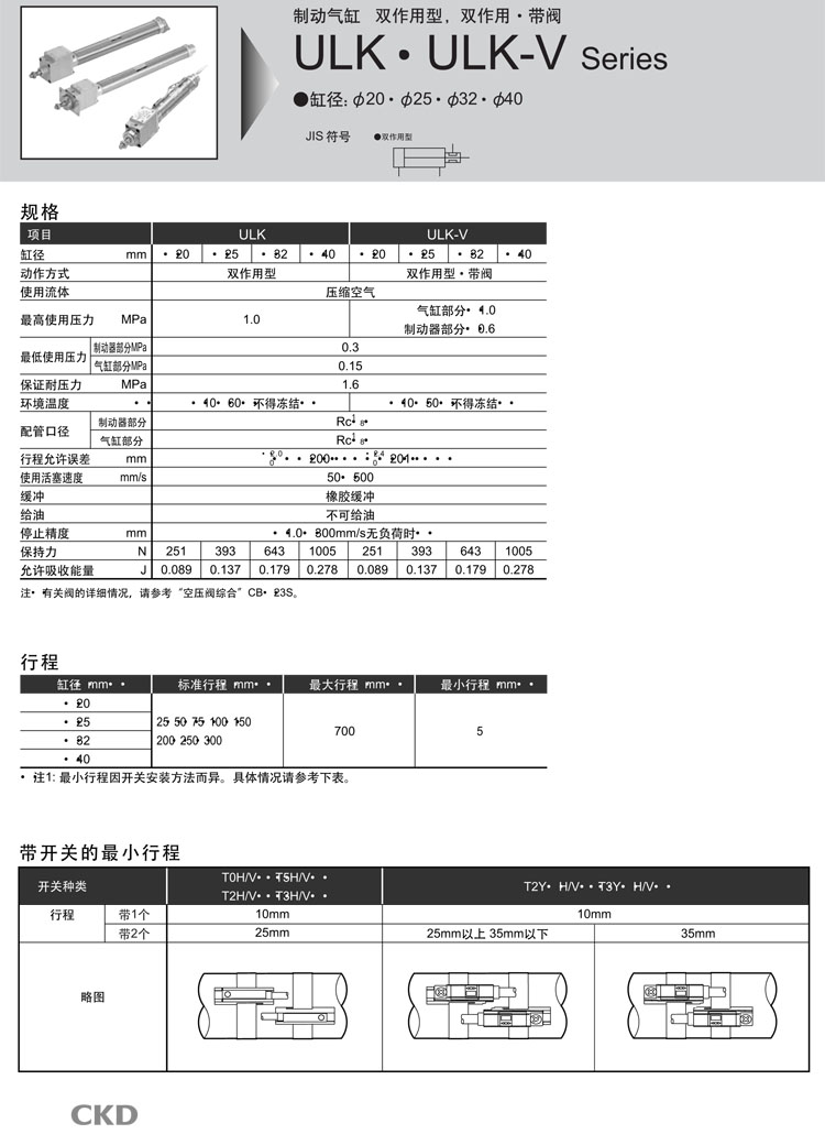 ULK-V-00,ULK-V-LB,ULK-V-FA,ULK-V-CA,ULK-V-CC,ULK-V-CC1,ULK-V-TA,ULK-V-TB,CKD制动气缸