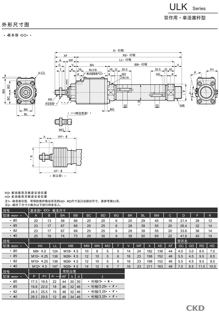 ULK-00,ULK-LB,ULK-FA,ULK-CA,ULK-CC,ULK-CC1,ULK-TA,ULK-TB,ULK-00-20-300,CKD制动气缸