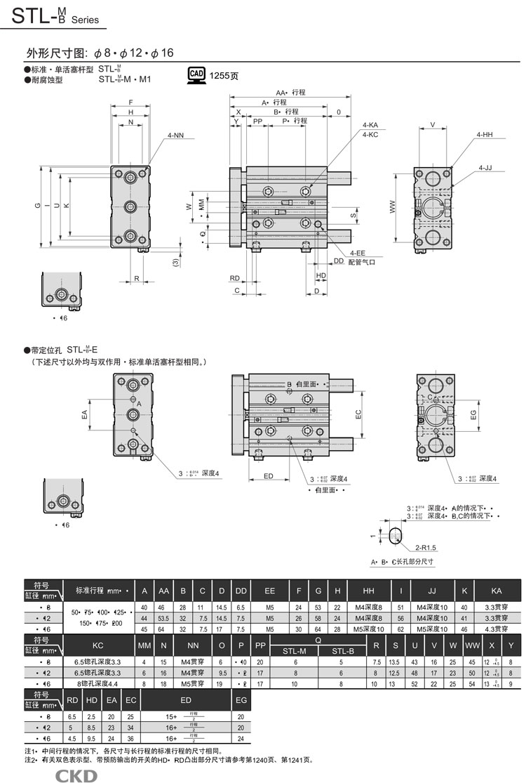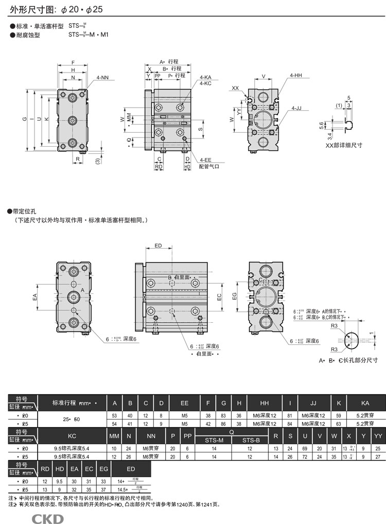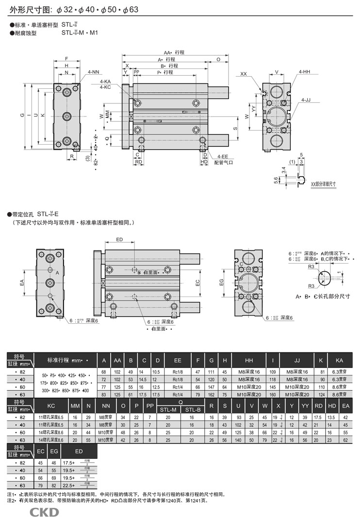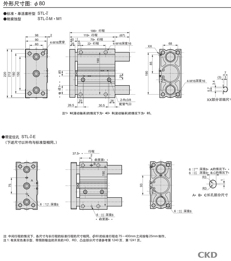 STS-M-32C-25,STS-B-32C-25,STL-B-32C-50,STL-M-32C-75,STL-M-32C-50,CKD带导杆气缸