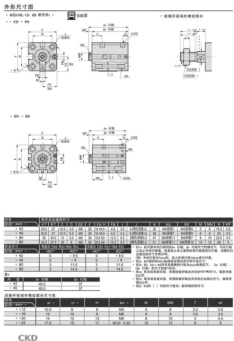 SSD-M-12-5,SSD-ML-12-5,SSD-ML1-12-5,SSD-ML-63-50,SSD-M-63-50,CKD超紧凑型气缸