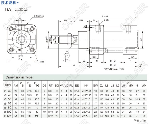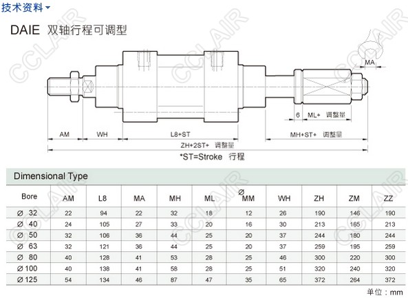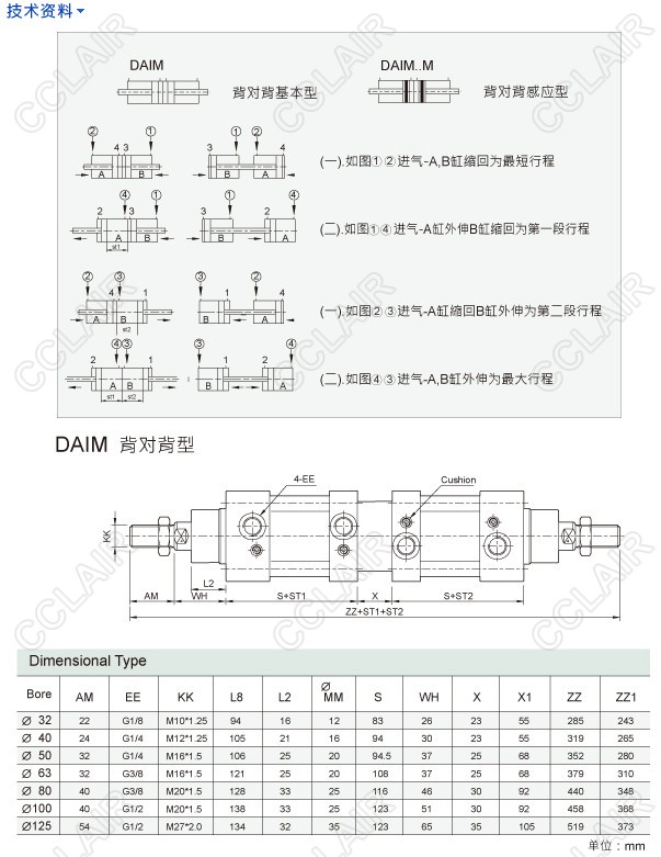 DAIM-80M50,DAIM-80M75,DAIM-80M100,DAIM-80M125,DAIM-80M150,DAIM-80M200气缸