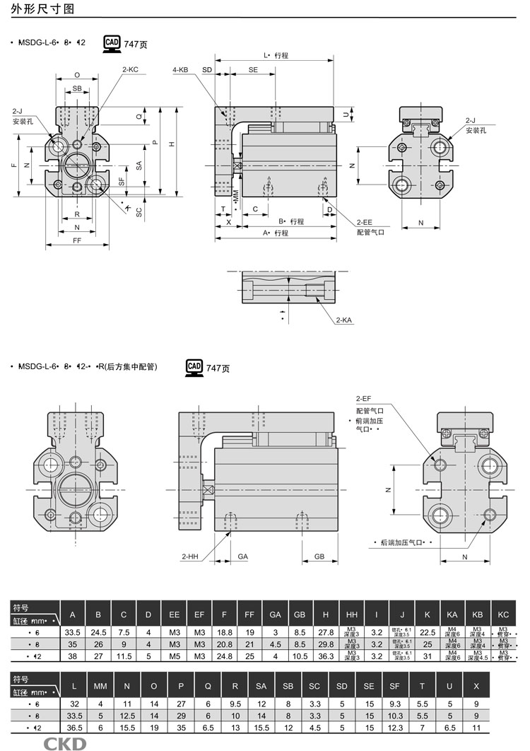 MSDG-L-6,MSDG-L-10,MSDG-L-15,MSDG-L-20,MSDG-L-25,MSDG-L-30,CKD紧凑型气缸