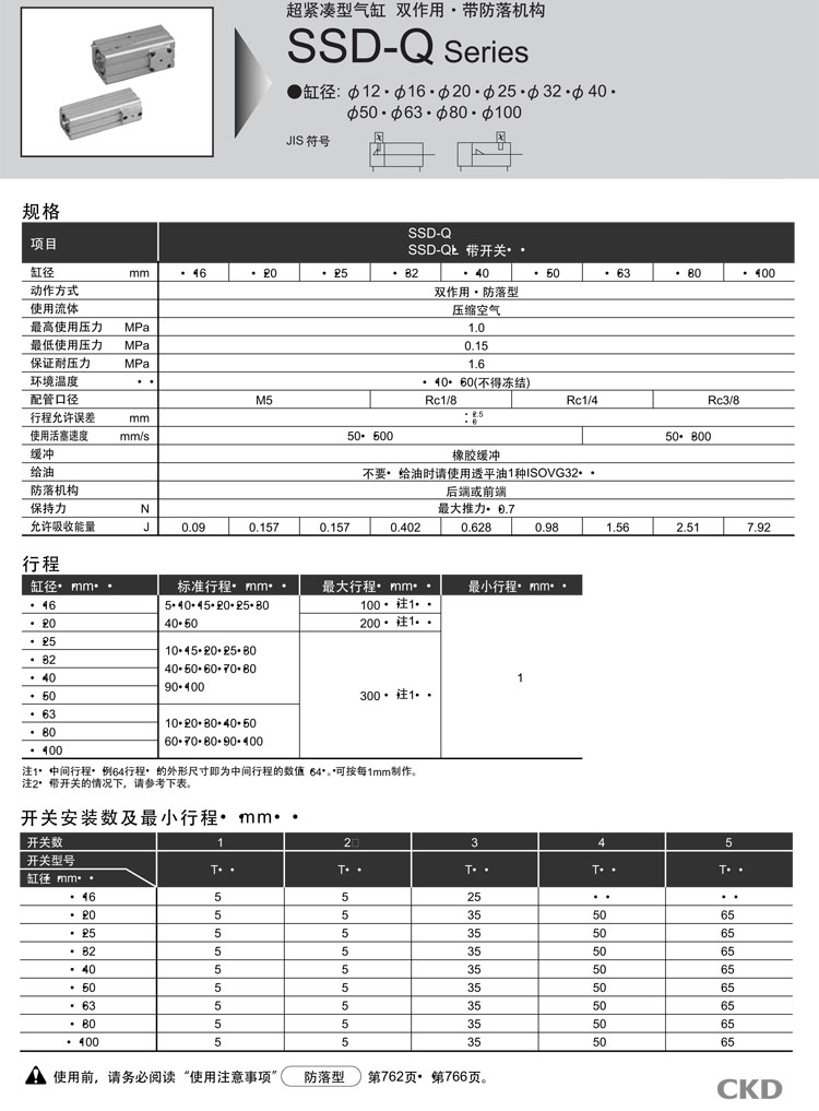 SSD-Q-16,SSD-Q-20,SSD-Q-25,SSD-Q-32,SSD-Q-40,SSD-Q-50,SSD-Q-63,SSD-Q-80,SSD-Q-100,CKD超紧凑型气缸