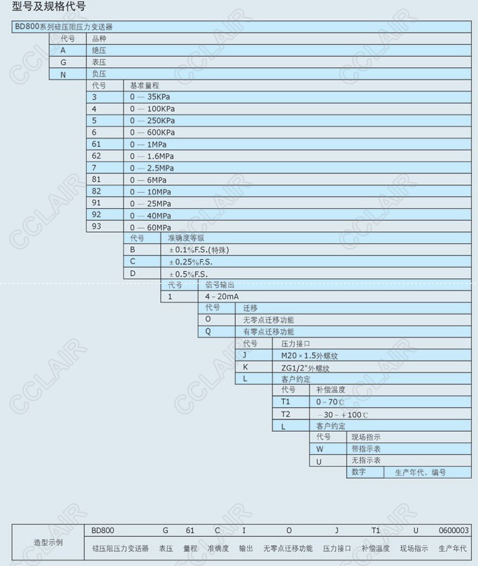 BD800A3,BD800A4,BD800A5,BD800A6,BD800G61,BD800G62,BD800G7,BD800N81,BD800N82,BD800N91,硅压阻压力变送器