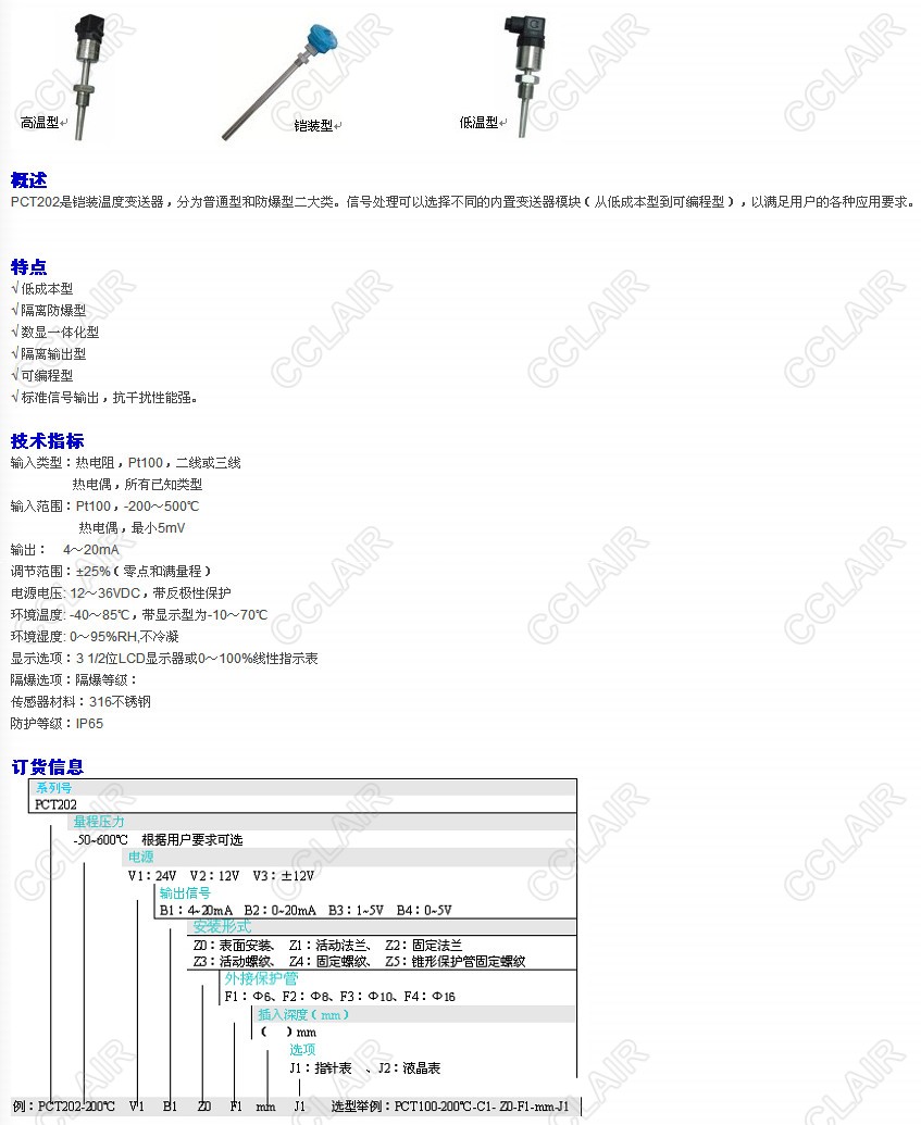 PCT202,铠装温度变送器