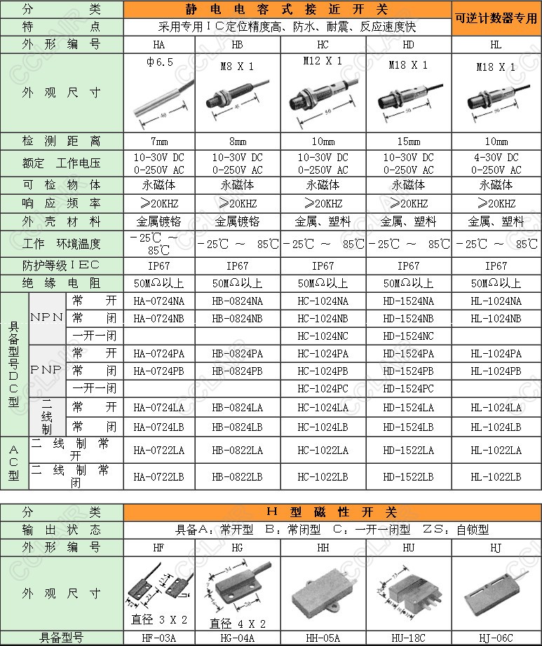 HA-0724NA,HB-0824NA,HC-1024NA,HD-1524NA,HL-1024NA,HA-0724NB,HB-0824NB,HC-1024NB,静电电容式接近开关
