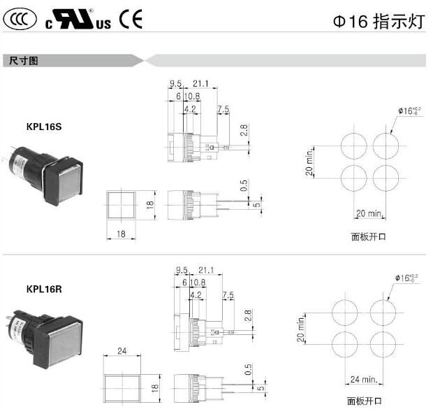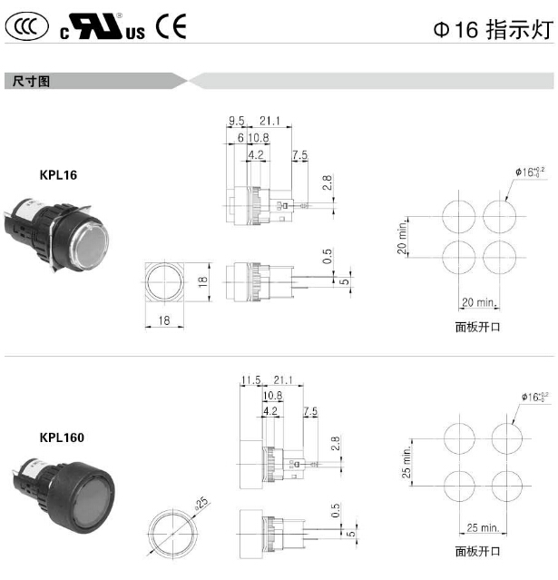 KPL16,KPL160,KPL161,KPL16S,KPL16R,KPL16-L1C,KPL160-L1C,KPL161-1C,KPL16S-3C,Koino Φ16指示灯