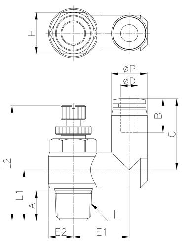 Model | ¢D | ¢P | T | L1 | L2(MIN) | L2(MAX) | E1 | E2 | A | B | H(Hex) | C | WEIGHT(g) | BOX(EA) |