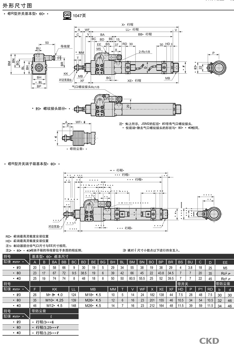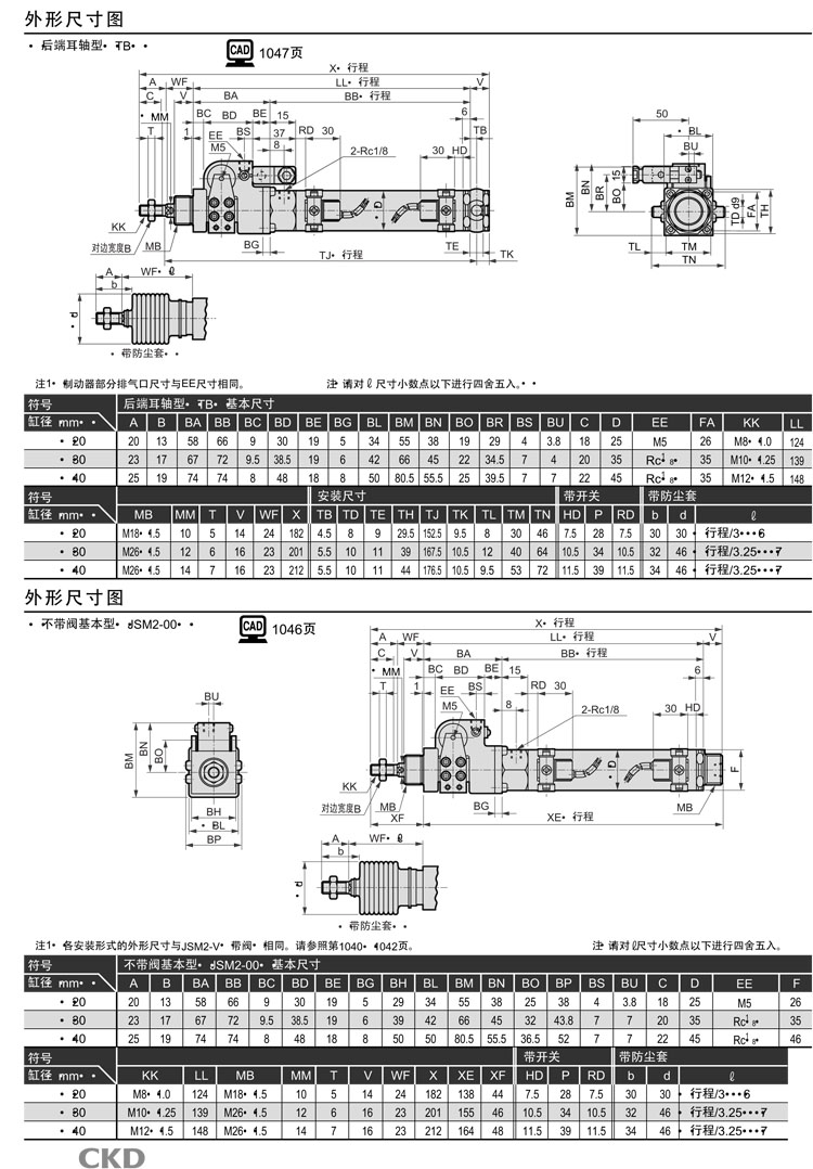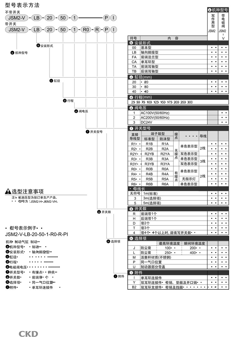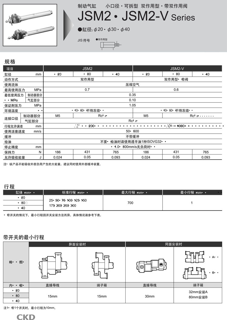 JSM2-V-00,JSM2-V-LB,JSM2-V-FA,JSM2-V-CA,JSM2-V-TA,JSM2-V-TB,JSM2-V-TB-40-150,CKD制动气缸