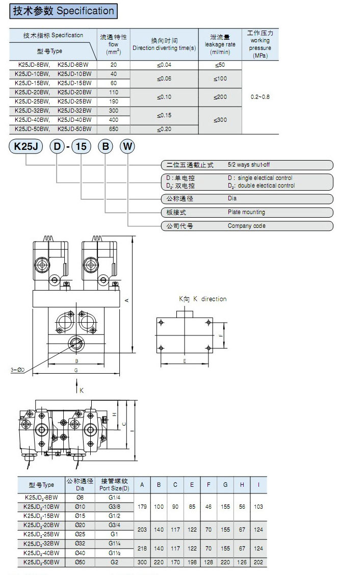 K25JD-8BW,K25JD-10BW,K25JD-15BW,K25JD-20BW,K25JD-25BW,K25JD-32BW,K25JD-40BW,K25JD-50BW,二位五通板接截止式换向阀
