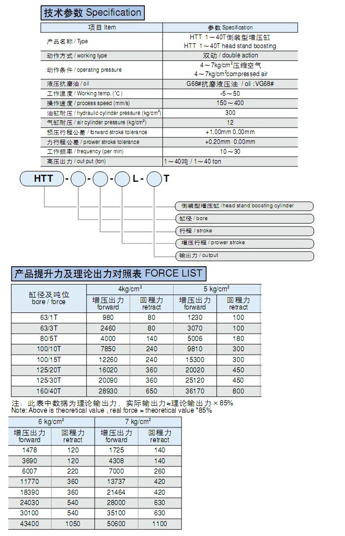 HTT-63,HTT-80,HTT-100,HTT-125,HTT-160,倒装型增压缸