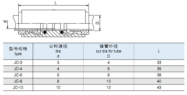 JC-3,JC-4,JC-6,JC-8,JC-10,插入式直通管接头