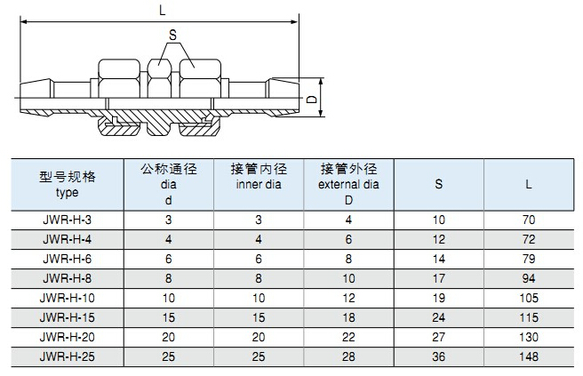 JWR-H-3,JWR-H-4,JWR-H-6,JWR-H-8,JWR-H-10,JWR-H-15,JWR-H-20,JWR-H-25,外插式直通活节管接头