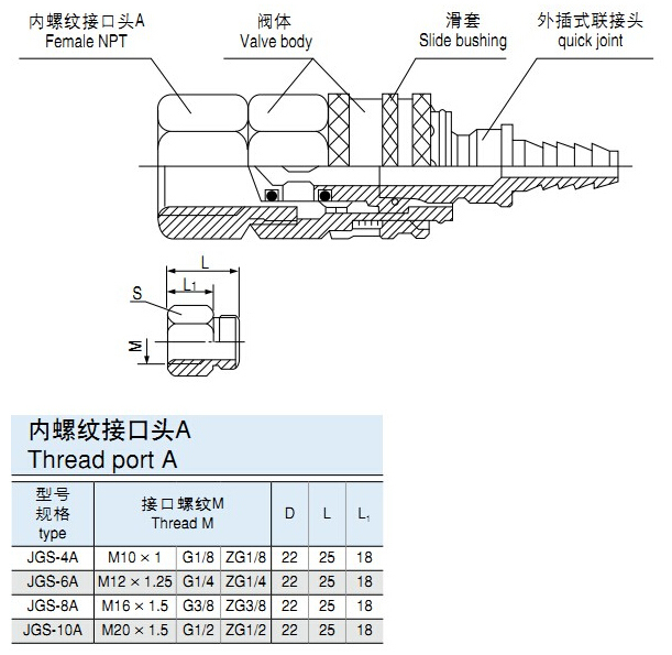 JGS-4A,JGS-6A,JGS-8A,JGS-10A,高性能快速接头