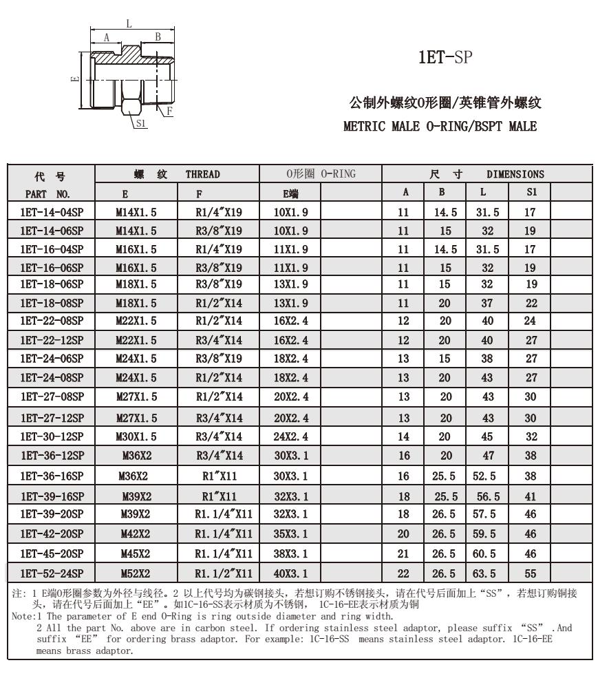 1ET-14,1ET-16,1ET-18,1ET-22,1ET-24,1ET-27,1ET-30,1ET-45,1ET-52,1ET-52-24SP,平面密封接头