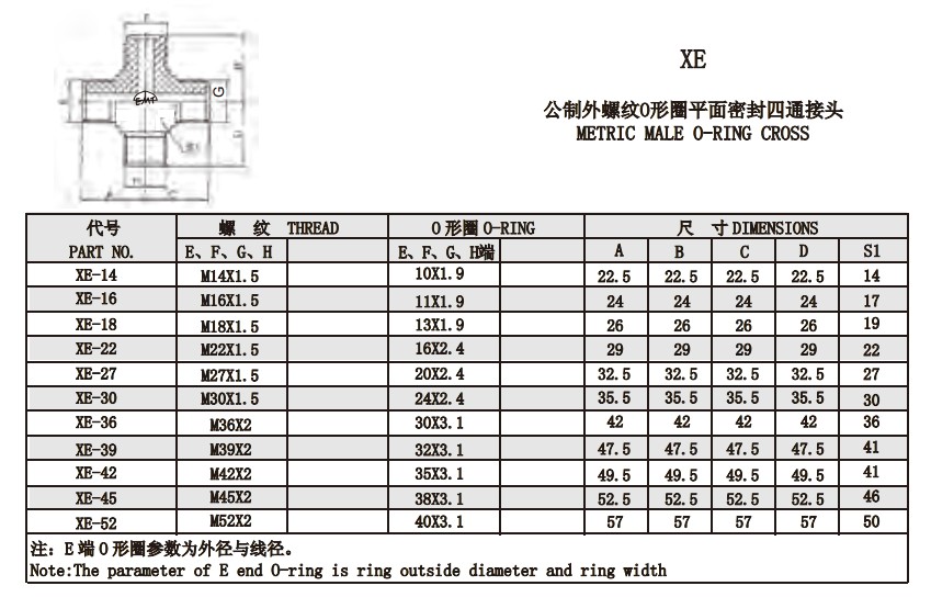 XE-14,XE-16,XE-18,XE-22,XE-27,XE-30,XE-36,XE-39,XE-42,XE-45,XE-52,平面密封接头