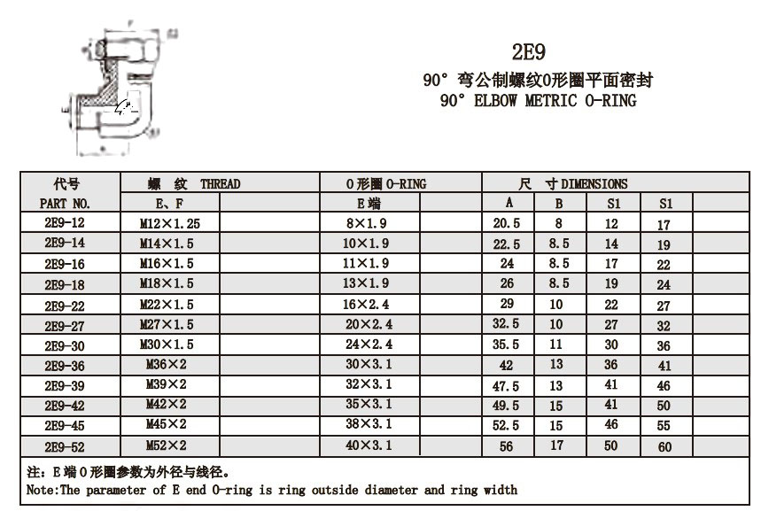 2E9-12,2E9-14,2E9-16,2E9-18,2E9-22,2E9-27,2E9-30,2E9-42,2E9-45,2E9-52,2E9-36,2E9-39,平面密封接头
