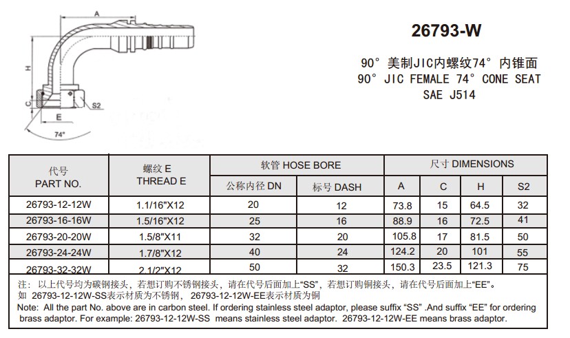 26793-12-12W,26793-16-16W,26793-20-20W,26793-24-24W,26793-32-32W,扣压式软管接头
