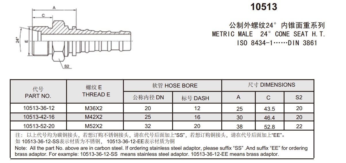 10513-36-12,10513-42-16,10513-52-20,扣压式软管接头