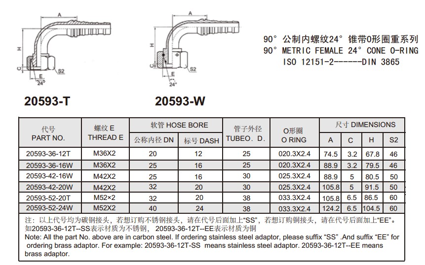 20593-36-12T,20593-36-16W,20593-42-16W,20593-42-20W,20593-52-20T,20593-52-24W,扣压式软管接头