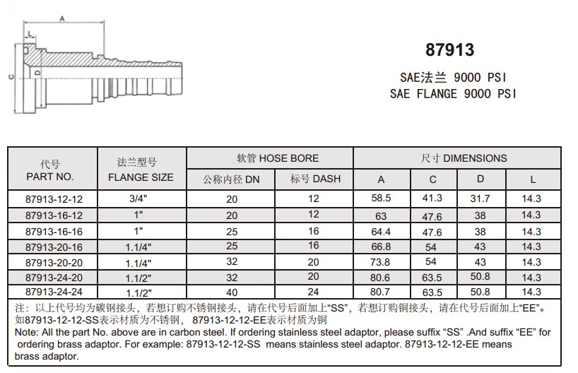 87913-12-12,87913-16-12,87913-16-16,87913-20-16,87913-20-20,87913-24-20,87913-24-24,扣压式软管接头