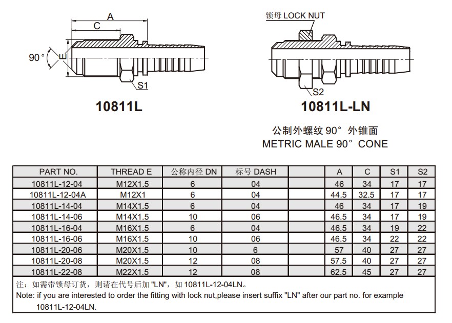 10811L-12-04,10811L-12-04A,10811L-14-04,10811L-14-06,10811L-16-04,10811L-16-06,扣压式软管接头