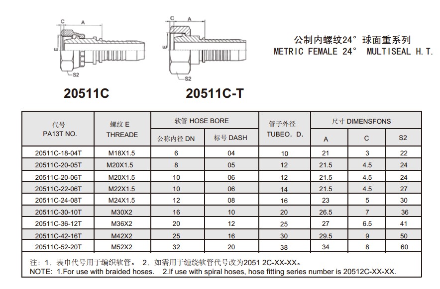 20511C-18-04T,20511C-20-05T,20511C-20-06T,20511C-22-06T,20511C-24-08T,扣压式软管接头
