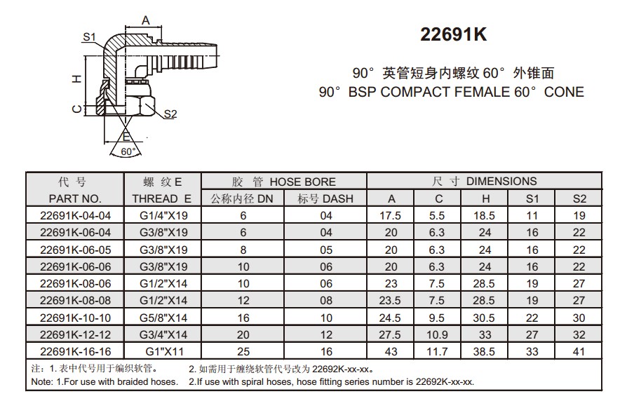 22691K-04-04,22691K-06-04,22691K-06-05,22691K-06-06,22691K-08-06,22691K-08-08,扣压式软管接头