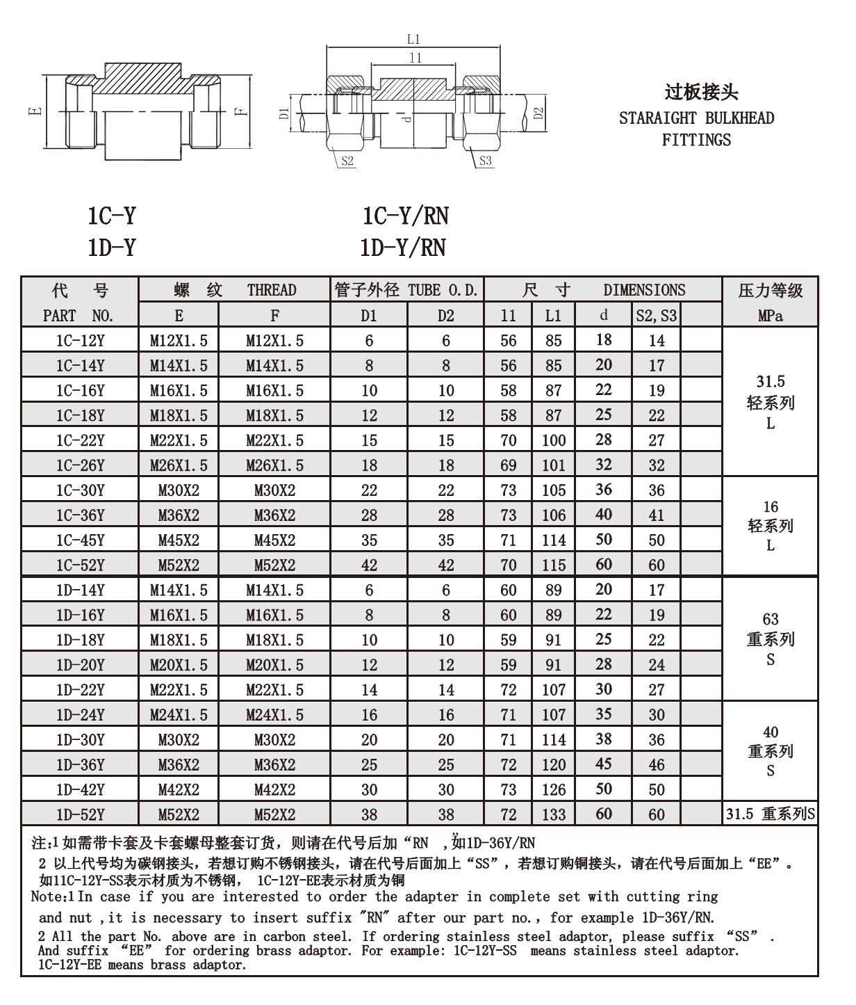 1C-12Y,1C-14Y,1C-16Y,1C-18Y,1C-22Y,1C-26Y,1D-24Y,1D-30Y,1D-36Y,1D-42Y,1D-52Y,过板接头