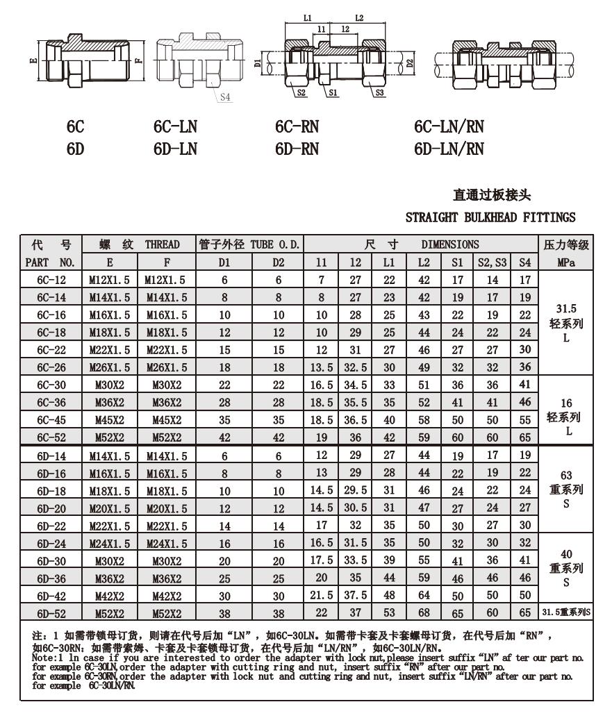 6C-12,6C-14,6C-16,6C-18,6C-22,6D-24,6D-30,6D-36,6D-42,6D-52,6C-45,6C-52,直通过板接头