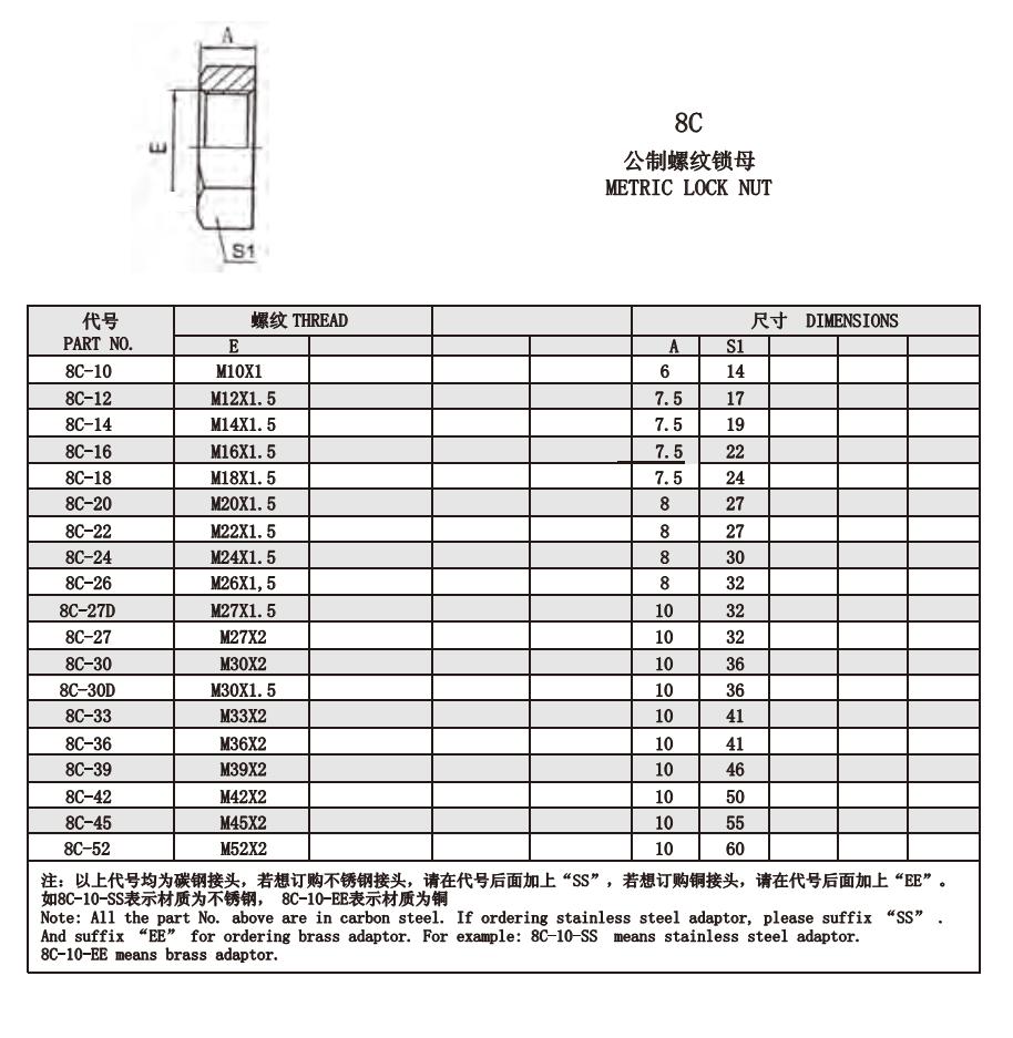 8C-10,8C-12,8C-14,8C-16,8C-18,8C-20,8C-22,8C-24,8C-26,8C-27D,8C-27,8C-30,8C-30D,公制螺纹锁母接头