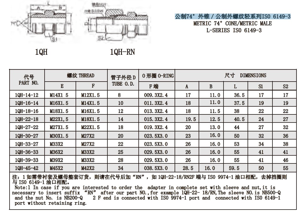 1QH-14-12,1QH-16-14,1QH-18-16,1QH-22-18,1QH-27-22,1QH-33-27,1QH-45-42,锥面密封接头