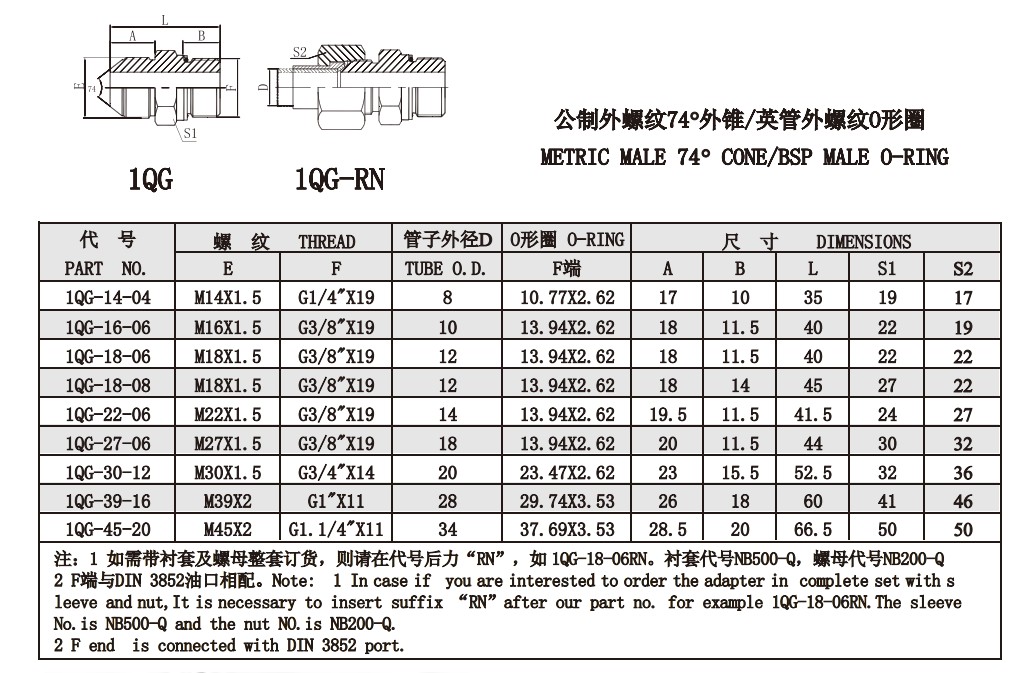 1QG-14-04,1QG-16-06,1QG-18-06,1QG-18-08,1QG-22-06,1QG-30-12,1QG-45-20,锥面密封接头