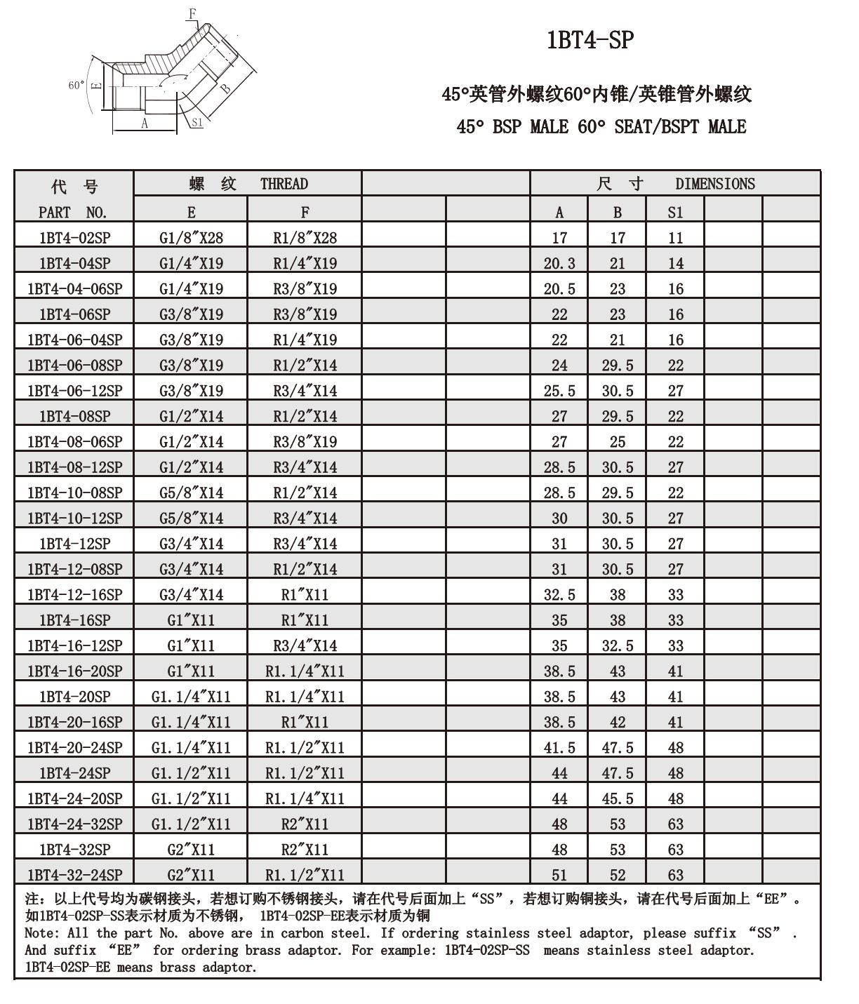 1BT4-02SP,1BT4-04SP,1BT4-06SP,1BT4-08SP,1BT4-12SP,1BT4-16SP,1BT4-20SP,1BT4-24SP,1BT4-32SP,锥面密封接头