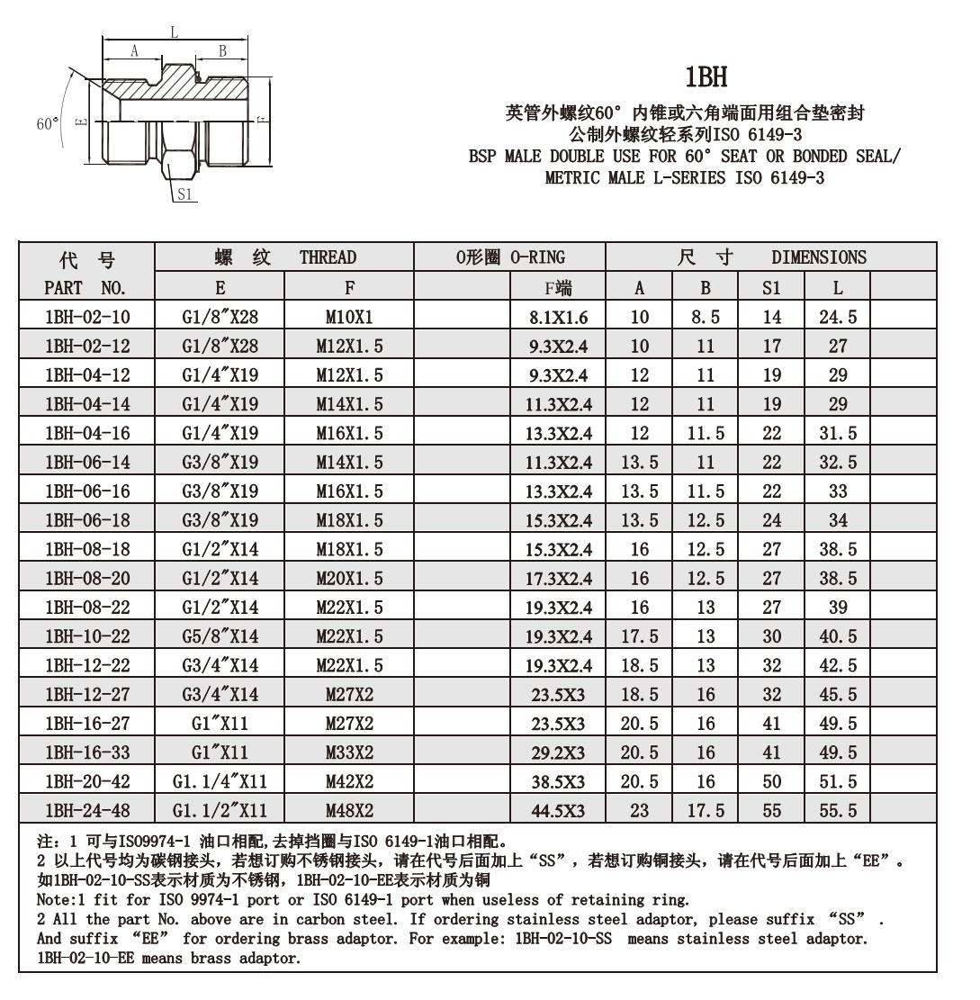 1BH-02-10,1BH-02-12,1BH-04-12,1BH-04-14,1BH-04-16,1BH-06-14,1BH-06-16,锥面密封接头