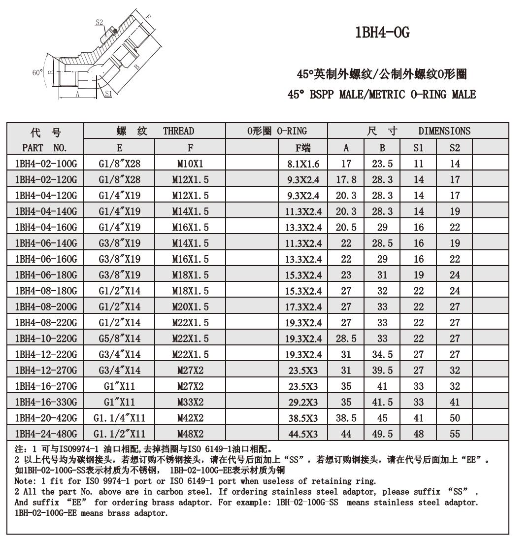 1BH4-02-100G,1BH4-02-120G,1BH4-04-120G,1BH4-04-140G,1BH4-04-160G,1BH4-06-140G,锥面密封接头