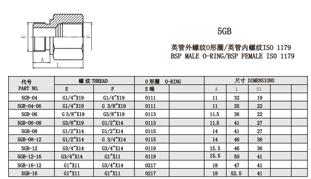 5GB-04,5GB-06,5GB-08,5GB-12,5GB-16,5GB-04-06,5GB-06-08,5GB-08-12,5GB-12-16,5GB-16-12,螺纹锥面密封接头