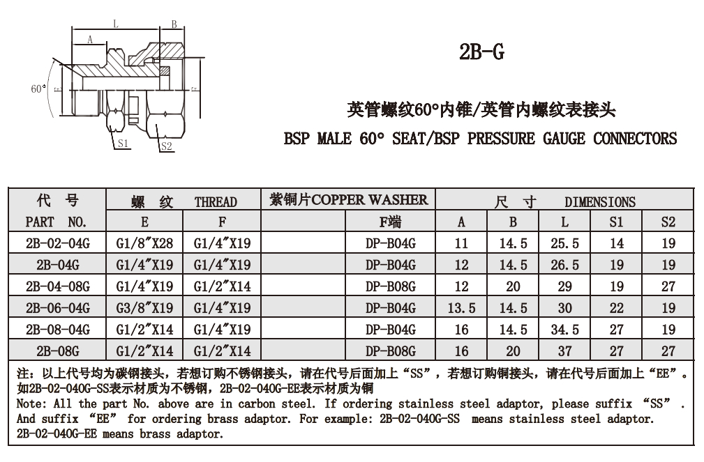 2B-02-04G,2B-04G,2B-04-08G,2B-06-04G,2B-08-04G,2B-08G,内螺纹表接头