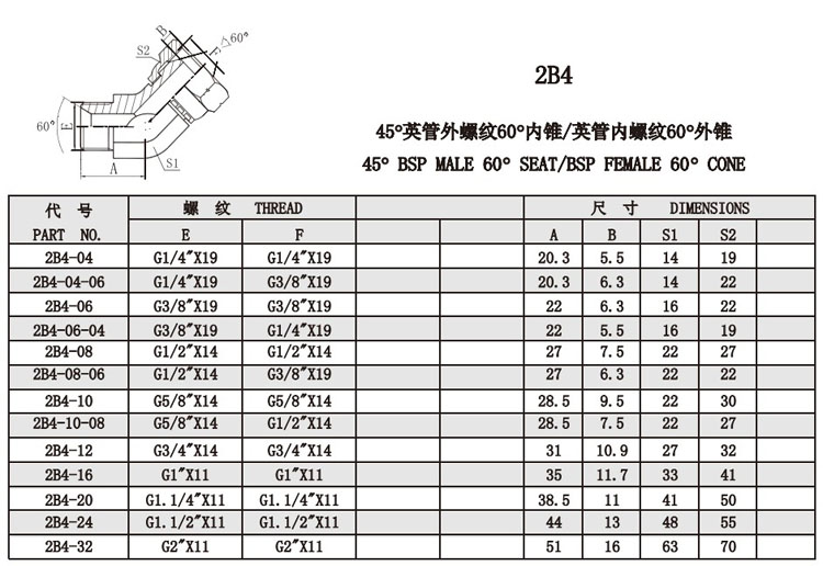 2B4-04,2B4-06,2B4-08,2B4-10,2B4-12,2B4-16,2B4-20,2B4-24,2B4-32,锥面密封接头