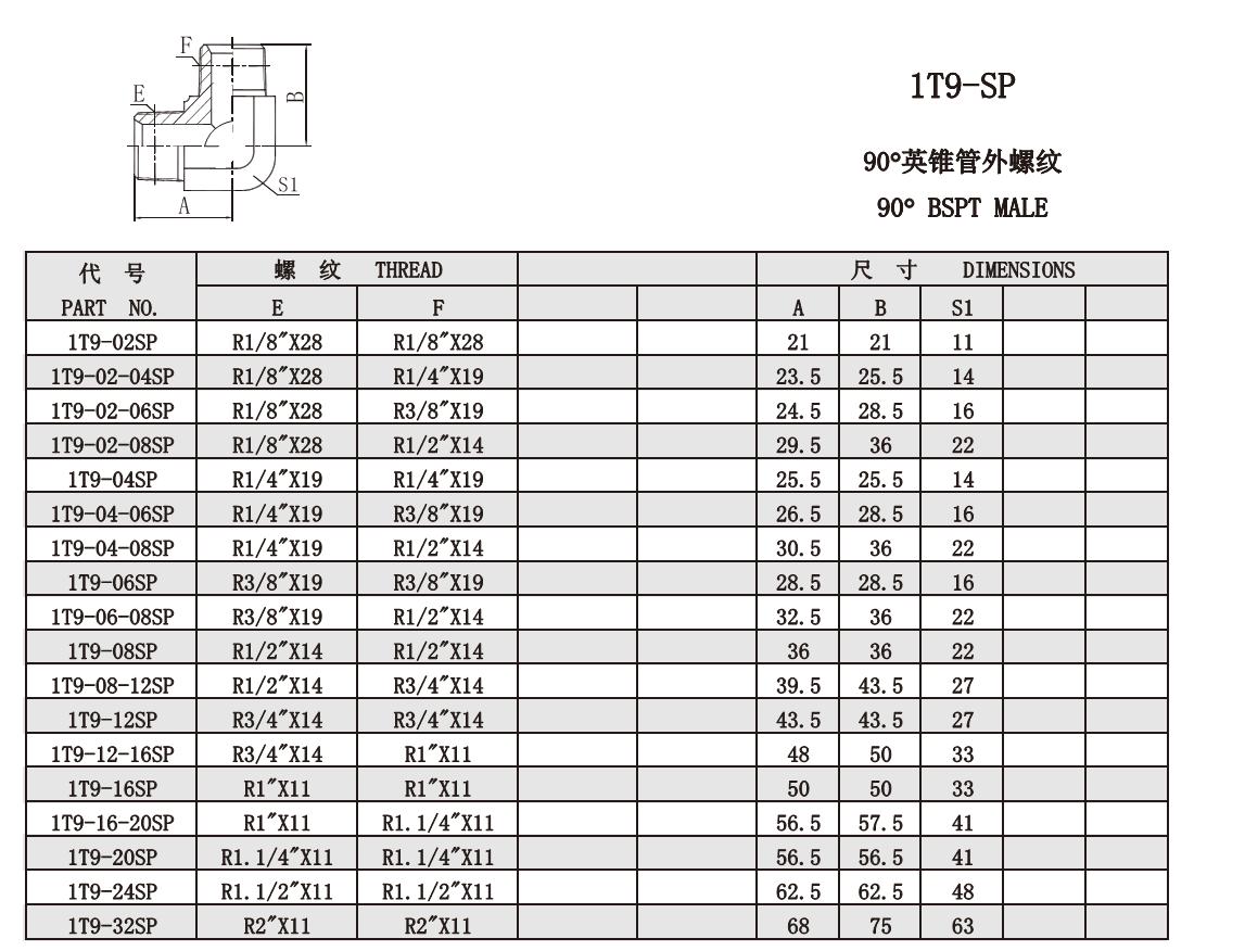 1T9-02SP,1T9-04SP,1T9-06SP,1T9-08SP,1T9-12SP,1T9-16SP,1T9-20SP,1T9-24SP,1T9-32SP,内螺纹接头