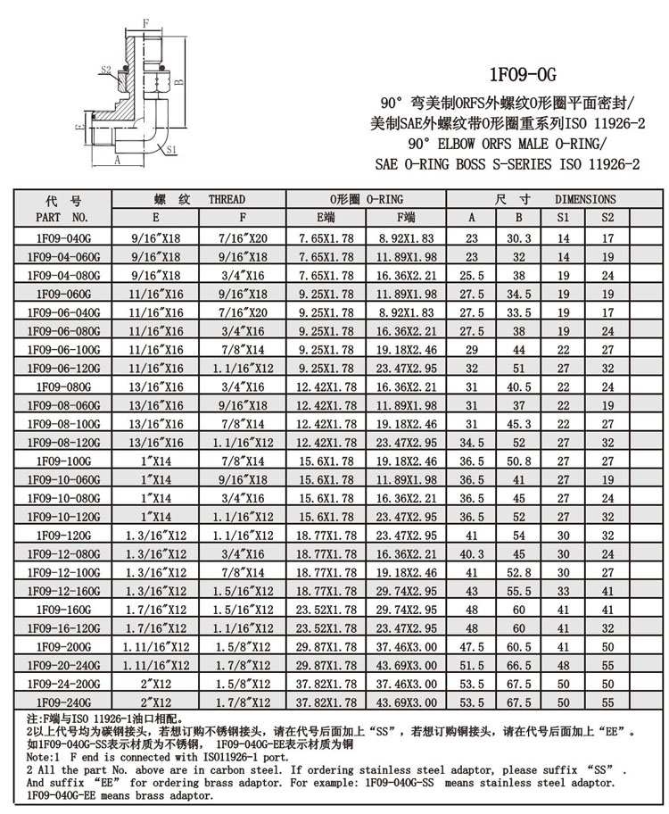 1F09-040G,1F09-060G,1F09-080G,1F09-120G,1F09-160G,1F09-200G,美螺纹O形圈密封接头