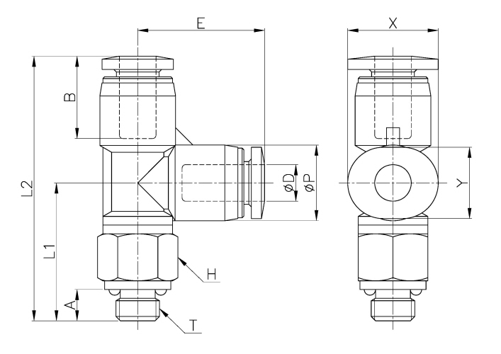 Model | ∅D | ∅P | T | L1 | L2 | E | A | B | H(Hex) | X | Y | ORIFICE | WEIGHT(g) | BOX(EA) |
