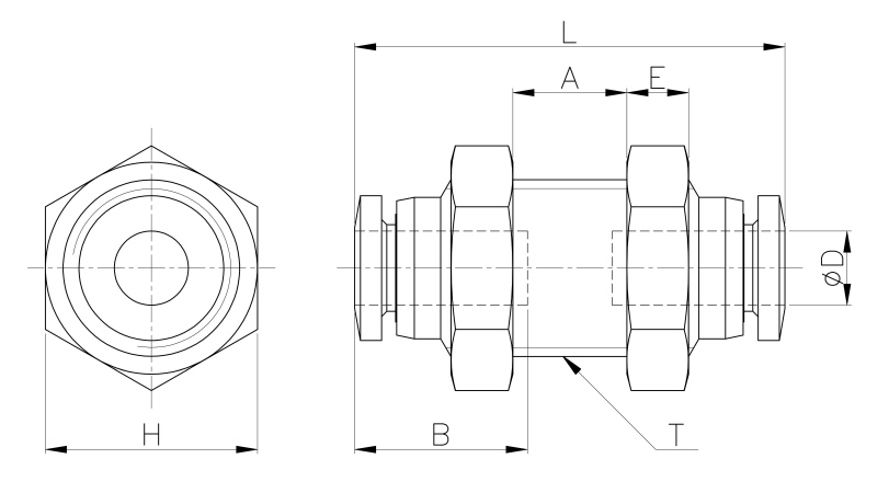 Model | ¢D | T | L | E | A | B | H(Hex) | ORIFICE | WEIGHT(g) | BOX(EA) |