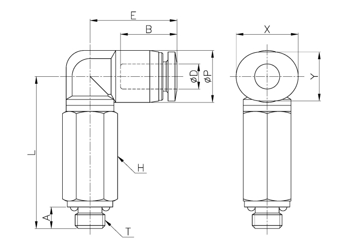 Model | ¢D | ¢P | T | L | E | A | B | H(Hex) | X | Y | ORIFICE | WEIGHT(g) | BOX(EA) |