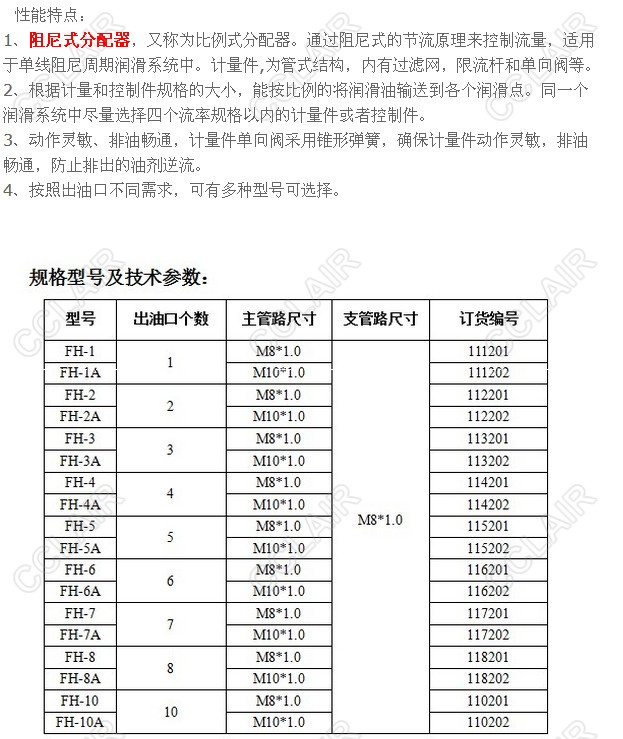 FH-1,FH-1A,FH-2,FH-2A,FH-3,FH-3A,FH-4,FH-4A,FH-5,FH-5A,FH-6,FH-6A,FH-7,阻尼式分配器