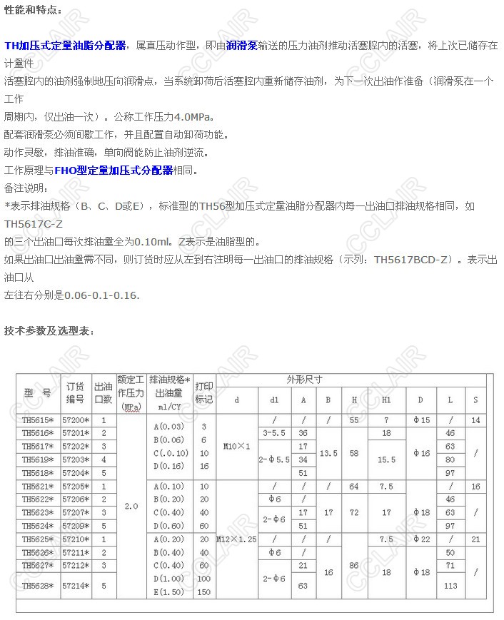 TH5615A-Z,TH5616A-Z,TH5617A-Z,TH5619C-Z,TH5618A-Z,TH5621A-ZTH5622AB-Z,加压式定量油脂分配器